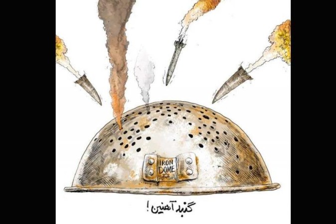 سامانه موشکی اسرائیل موسوم به «گنبد آهنین» که هزینه ی زیادی برای اسرائیل دارد، بارها ناکارآمدی خود را نشان داده است. در درگیریهای اخیر، این سامانه نتوانست موشکهای گروههای مقاومت را رهگیری کند و همچنین ۲ فروند موشک به شهرک صهیونیست نشین «ایلات» به اشتباه شلیک کرد. گنبد آهنین رژیم صهیونیستی از چشم کاریکاتوریستهای جهان دور نمانده و باعث خلق آثار زیر شده است.
