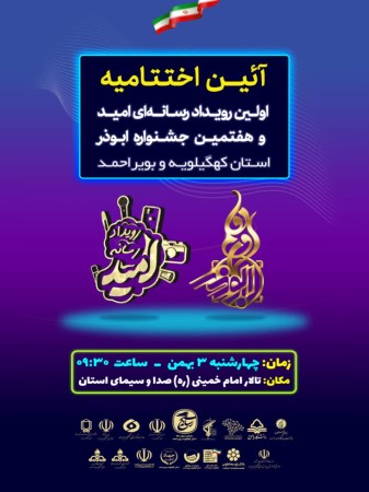 اختتامیه نخستین رویداد رسانه امید و هفتمین جشنواره رسانه ای ابوذر سوم بهمن در یاسوج برگزار می شود.